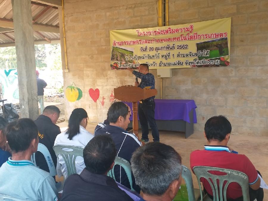 วันที่ 20 ก.พ.2562 เทศบาลตำบลจันจว้า จัดทำโครงการส่งเสริมความรู้ด้านการเกษตรและถ่ายทอดเทคโนโลยีการเกษตร เน่ืองจากเทศบาลตำบลจันจว้ามีเขตพื้นที่รับผิดชอบ ๒ ตำบล ๒๓ หมู่บ้าน โดยมีพื้นที่ทั้งสิ้นรวม ๑๒๘ ตารางกิโลเมตร ซึ่งพื้นที่กว่าร้อยละ ๗๐ เป็นพื้นที่ทางการเกษตร ไม่ว่าจะเป็นทำนา ทำสวน ทำไร่ รวมทั้งเลี้ยงสัตว์ และพื้นที่ทำการเกษตรที่กว้างใหญ่นี้ ส่วนใหญ่เป็นการเกษตรแบบเชิงเดี่ยว เน้นการปลูกพืชชนิดเดียวในพื้นที่ โดยเฉพาะการทำนาข้าวนั้น ทำกันทั้งนาปีและนาปรัง ซึ่งการทำเกษตรแบบเชิงเดี่ยวนี้ เป็นปัจจัยสำคัญที่ทำให้เกิดการแพร่ระบาดของโรคและแมลงศัตรูพืช เนื่องจากแหล่งอาหารทำมีมาก ทำให้เหมาะกับการเจริญพันธุ์ ดังจะเห็นได้จากที่บางปีเกิดการระบาดของโรคและแมลงศัตรูพืชอย่างรุนแรงและเป็นวงกว้าง จนกลายเป็นภัยพิบัติทางการเกษตร ทำให้ผลิตผลทางการเกษตรเกิดความเสียหายมากมาย บางรายเกษตรกรไม่สามารถเก็บเกี่ยวได้ก็มี ร้องถึงหน่วยงานภาครัฐต้องเข้าทำการช่วยเหลือและบรรเทาความเดือดร้อน จึงมีความจำเป็นอย่างยิ่งที่ตัวของเกษตรกรเองต้องมีความรู้ ความเข้าใจที่ถูกต้องตามหลักวิชาการ ในการประกอบอาชีพด้านการเกษตร โดยการจะสรรหาความรู้ที่กล่าวมาข้างต้น จะต้องมีแหล่งรวบรวมองค์ความรู้ด้านการเกษตร มีเจ้าหน้าที่ประจำที่คอยให้ความรู้และคำปรึกษา มีคณะกรรมการซึ่งประกอบด้วยเกษตรกรในพื้นที่ และเจ้าหน้าที่ที่เกี่ยวข้อง