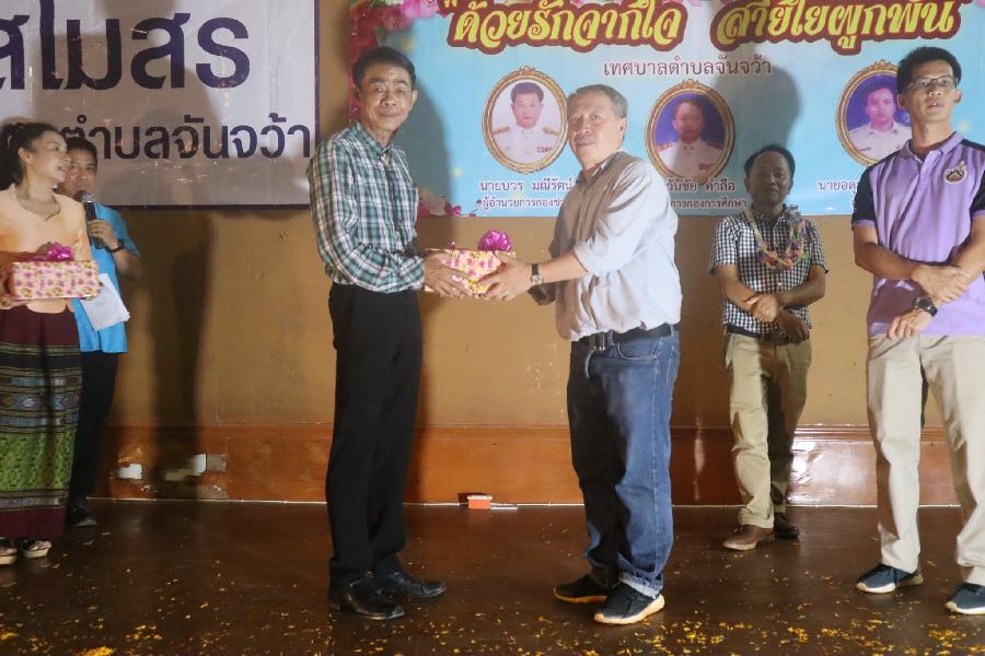 งานแสดงมุทิตาจิตพนักงานเทศบาลเกษียณอายุราชการเทศบาลตำบลจว้า ประจำปี 2563 โดยนายบรรจง ยางยืน นายกเทศมนตรีตำบลจันจว้า ประธานเปิดงาน ซึ่งปีนี้มีผู้เกษียณอายุราชการเทศบาลตำบลจันจว้า รวมทั้งสิ้น 3 ท่านได้แก่