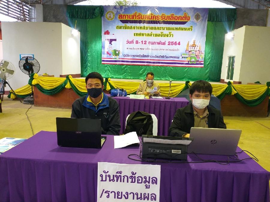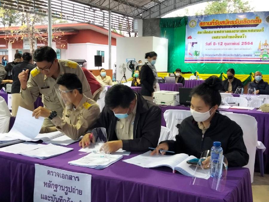 บรรยากาศการรับสมัครรับเลือกตั้งสมาชิกสภาเทศบาลและนายกเทศมนตรี เทศบาลตำบลจันจว้า วันที่ 3 ณ หอประชุมเทศบาลประสานมิตร