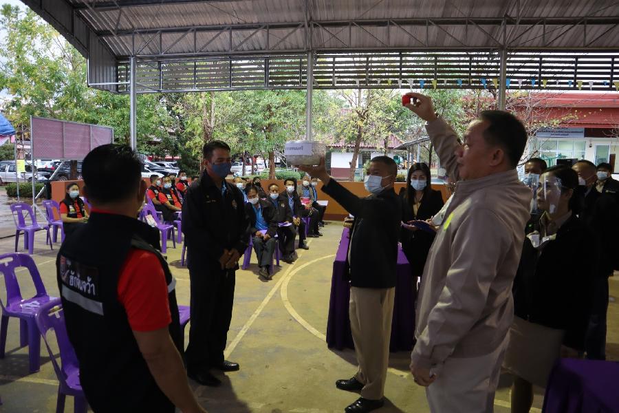 ปลัดเทศบาล ปฏิบัติหน้าที่นายกเทศมนตรี ร่วมกับการท่องเที่ยวและกีฬาจังหวัดเชียงรายรับมอบเสื้อชูชีพ จากกรมเจ้าท่าจังหวัดเชียงราย ณ วัดป่าหมากหน่อ