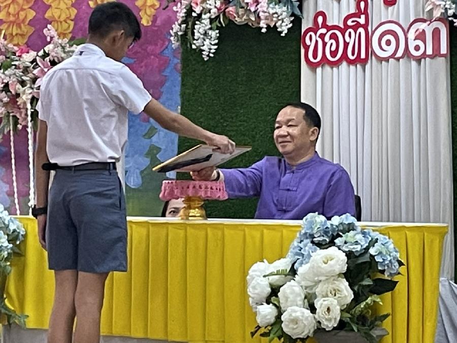 ว่าที่ร้อยตรีธีรภพ ธนะศรี ปลัดเทศบาลปฏิบัติหน้าที่นายกเทศมนตรีตำบลจันจว้า มอบใบประกาศนียบัตรนักเรียนศูนย์พัฒนาเด็กเล็กเทศบาลตำบลจันจว้า ณ หอประชุมศพด.ตำบลจันจว้า