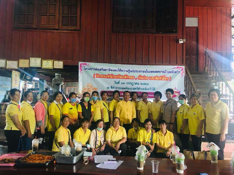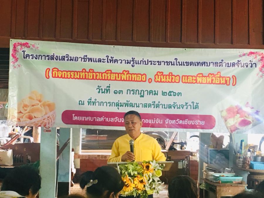เทศบาลตำบลจันจว้า โดย นายบรรจง ยางยืน นายกเทศมนตรีตำบลจันจว้า ร่วมกับ นางนิรุซา ซาวคำเขตต์ หัวหน้าสำนักปลัด และนักพัฒนาชุมชน จัดโครงการส่งเสริมอาชีพและให้ความรู้แก่ประชาชนในเขตเทศบาลตำบลจันจว้า กิจกรรมทำข้าวเกรียบฟักทอง มันม่วง และพืชหัวอื่นๆ ณ ที่ทำการกลุ่มพัฒนาสตรีตำบลจันจว้าใต้ (เปิดดู 2,314)