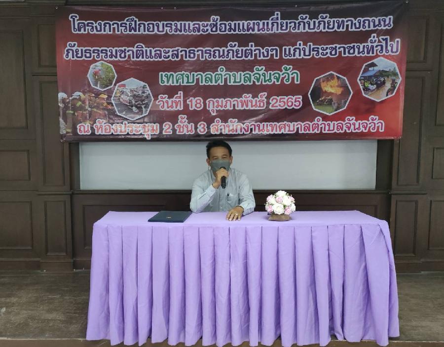 นายทนงศักดิ์ ทองแสง นายกเทศมนตรีตำบลจันจว้า ได้เป็นประธานในพิธีเปิด "โครงการฝึกอบรม ซ้อมแผนเกี่ยวกับภัยทางถนน ภัยธรรมชาติ และสาธารณภัยต่างๆ " กลุ่มเป้าหมาย ประชาชนทั่วไป ภาคีเครือข่ายป้องกันและบรรเทาสาธารณภัย และเจ้าหน้าที่เทศบาลตำบลจันจว้า ณ สำนักงานเทศบาลตำบลจันจว้า (เปิดดู 2,306)