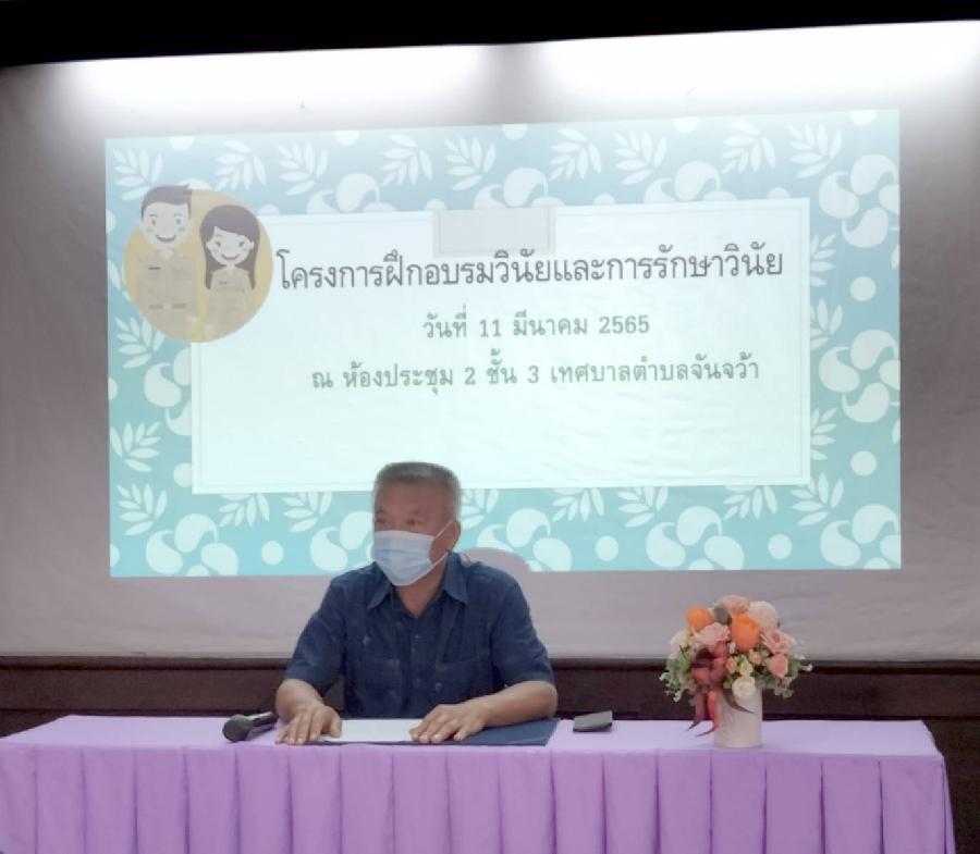 3 มี.ค. 65 นายทนงศักดิ์ ทองแสนนายกเทศมนตรีตำบลจันจว้า พร้อมด้วยสมาชิกสภา เปิดโครงการอบรมเฝ้าระวังป้องกันและควบคุมโรคติดเชื้อโควิด -19ณ ศาลาเอนกประสงค์บ้านต้นยาง หมู่.7 ตำบลจันจว้า