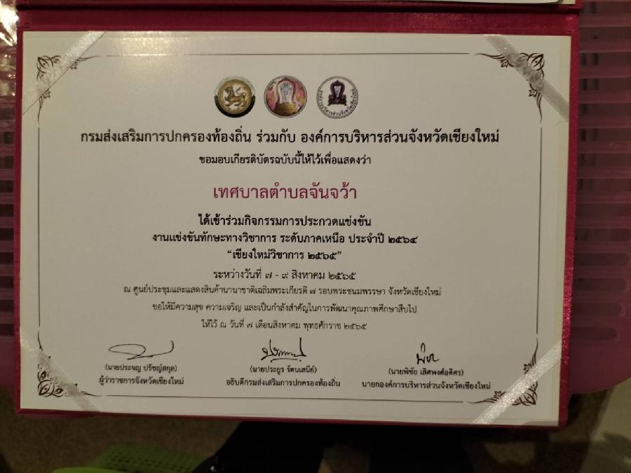 วันที่ 7 สิงหาคม 2565 เทศบาลตำบลจันจว้า นำโดยนางมยุเรศ อินทจักร์ รองนายกฯเทศมนตรี สมาชิกสภาเทศบาล หัวหน้าส่วนราชการเทศบาล คณะครูโรงเรียนในสังกัดเทศบาล นักเรียนโรงเรียนเทศบาล 1 ต้นยาง, โรงเรียนเทศบาล 2 บ้านใหม่ฯ ร่วมมหกรรมการจัดการศึกษาท้องถิ่น ระดับประเทศครั้งที่ 12 จำปี พ.ศ. 2565 “การลดความเหลื่อมล้ำทางการศึกษา” ณ จังหวัดเชียงใหม่ (เปิดดู 2,312)