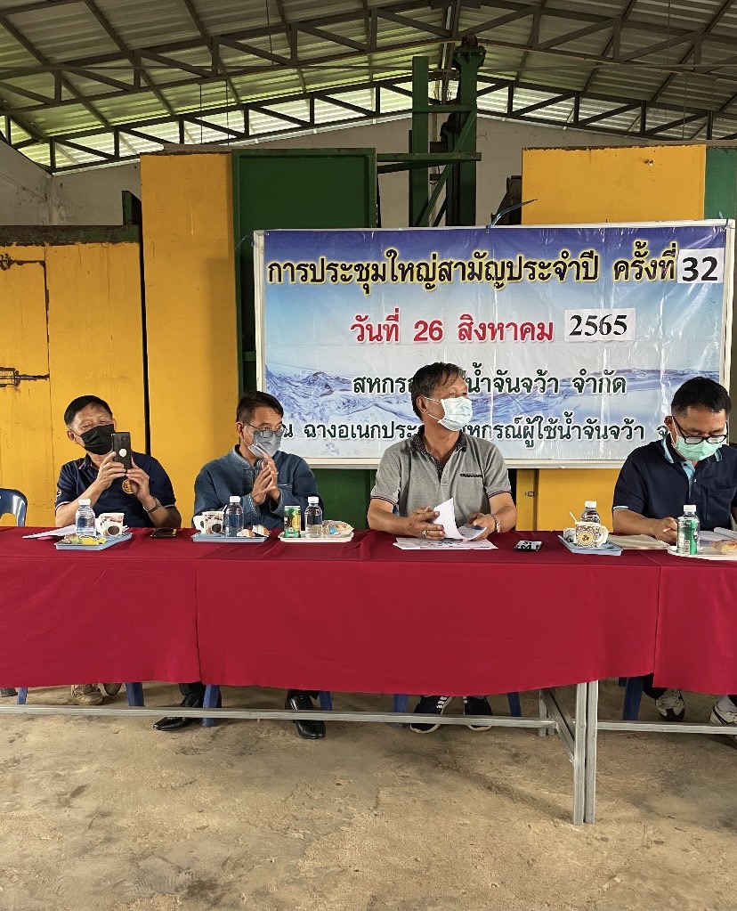 26 ส.ค. 65 นายทนงศักดิ์ ทองแสน นายกเทศมนตรีตำบลจันจว้า ร่วมประชุมใหญ่สามัญประจำปี ครั้งที่ 32 สหกรณ์ผู้ใช้น้ำจันจว้า ณ ศาลาอเนกประสงค์สหกรณ์ผู้ใช้น้ำจันจว้า บ้านสันทางหลวง หมู่ 12