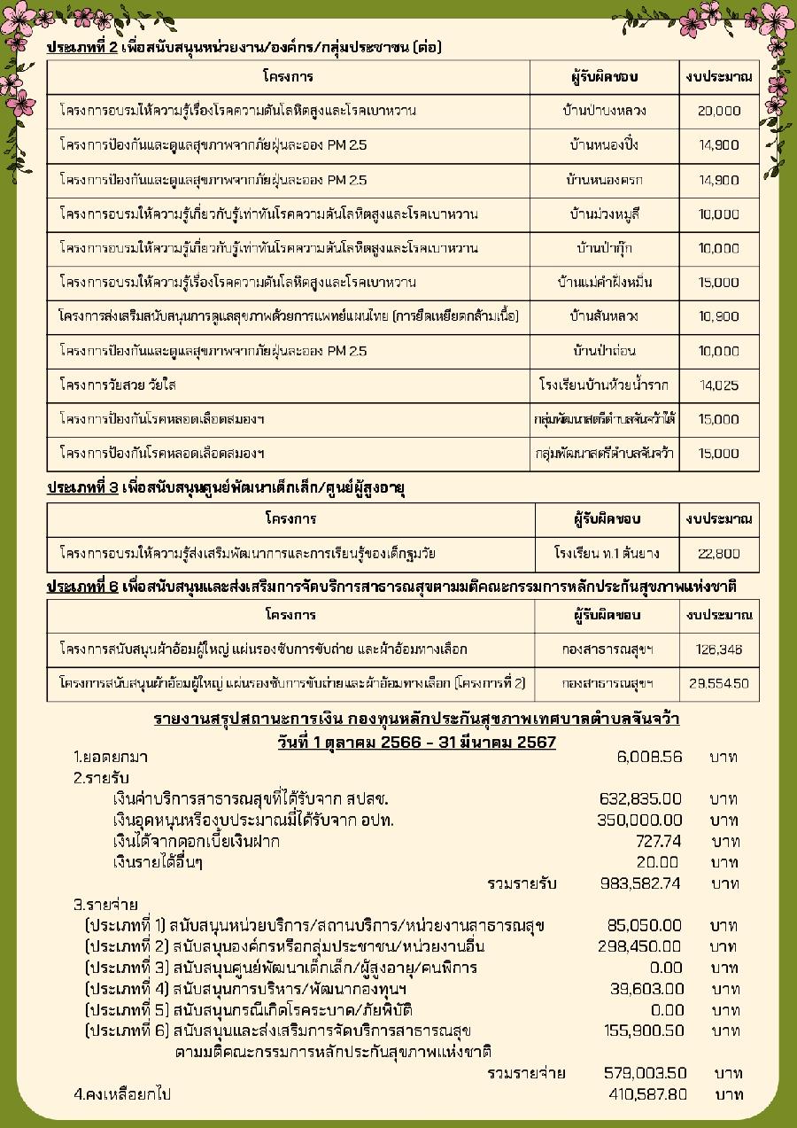 ประชาสัมพันธ์ จดหมายข่าวฉบับที่ 2/2567 กองทุนหลักประกันสุขภาพเทศบาลตำบลจันจว้า