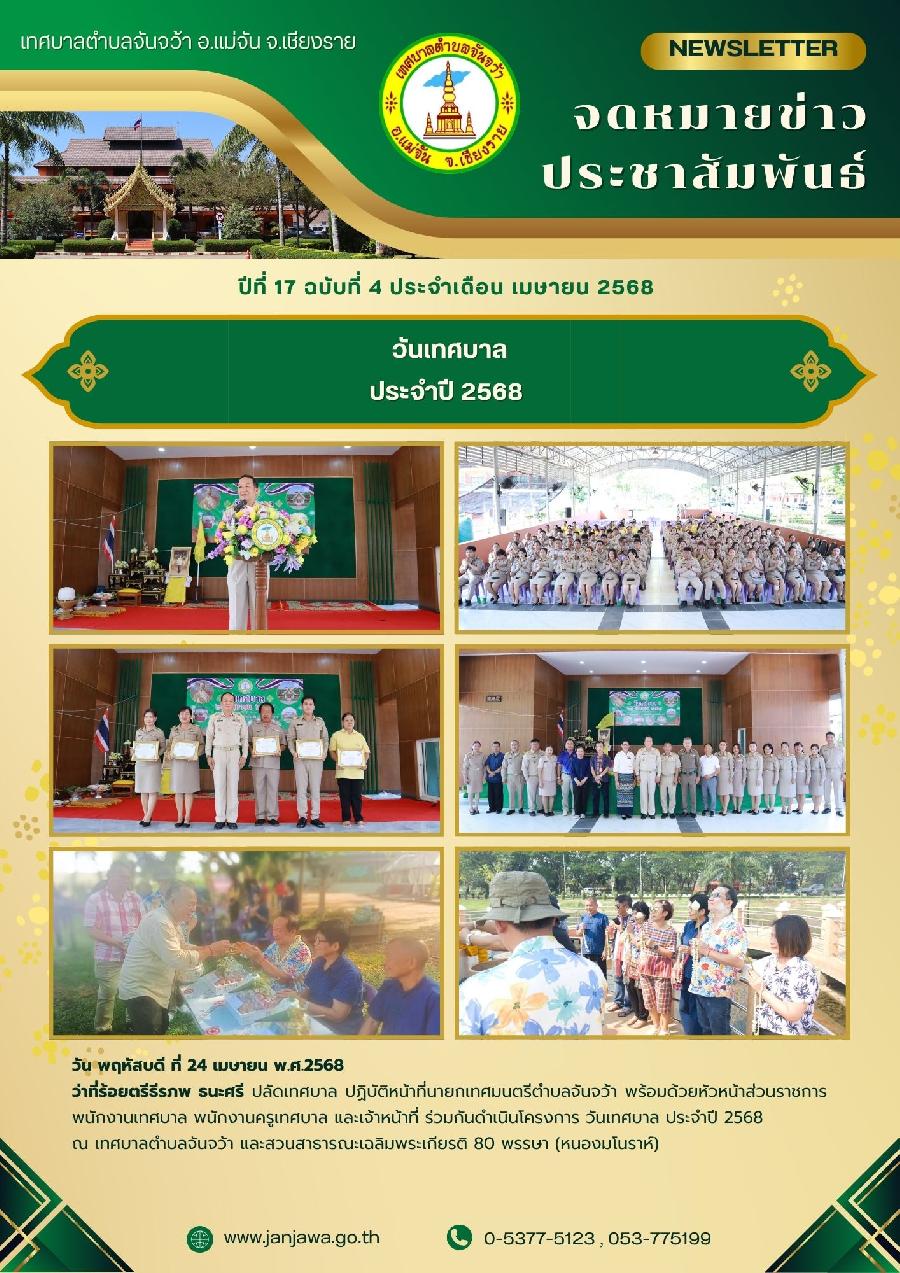 จดหมายข่าวเทศบาลตำบลจันจว้า ปีที่ 17 ฉบับที่ 4 ประจำเดือน เมษายน 2568