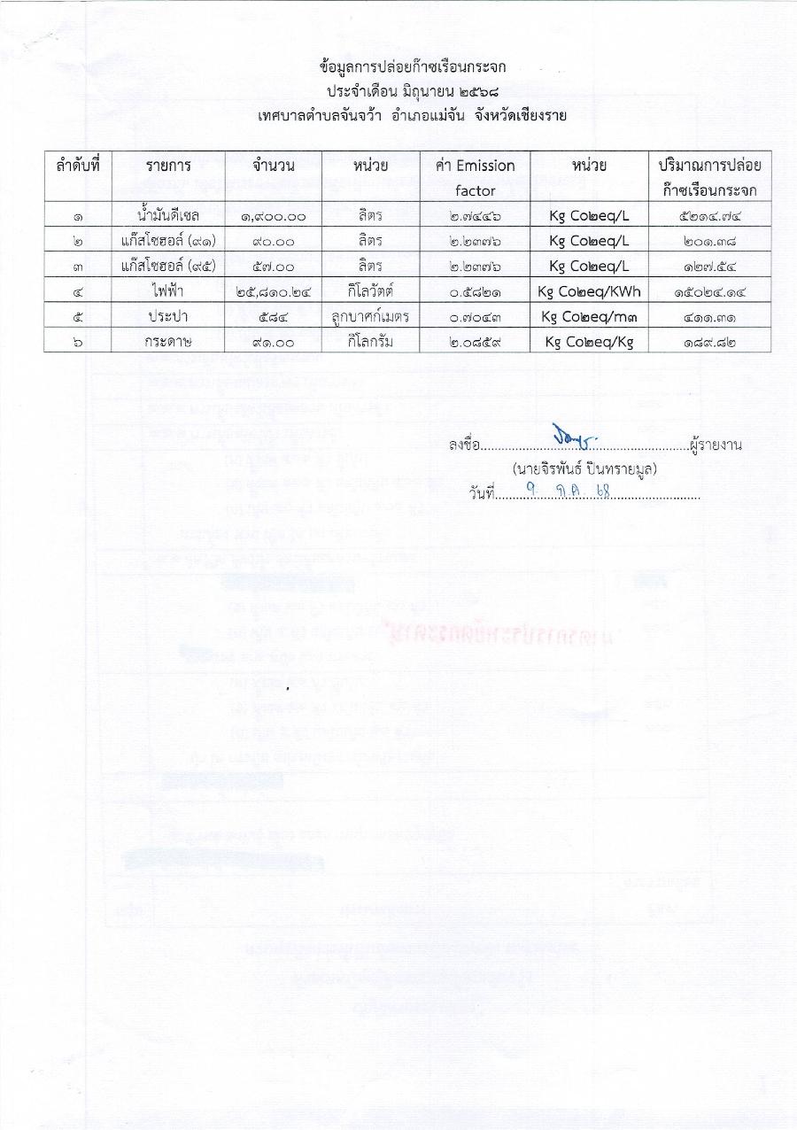 รายงานข้อมูลการปล่อยก๊าซเรือนกระจก ประจำเดือน มิถุนายน 2568