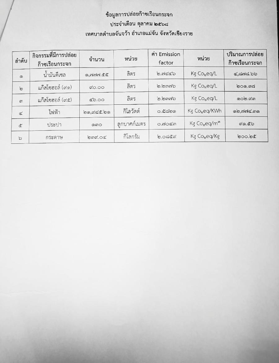 ข้อมูลการปล่อยก๊าซเรือนกระจก ประจำเดือน ตุลาคม 2568