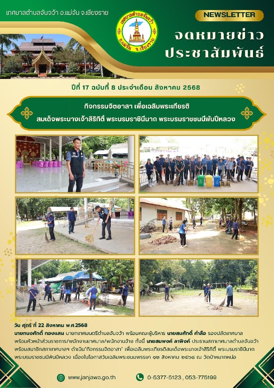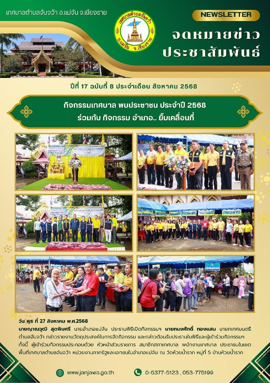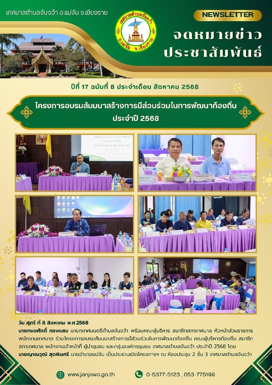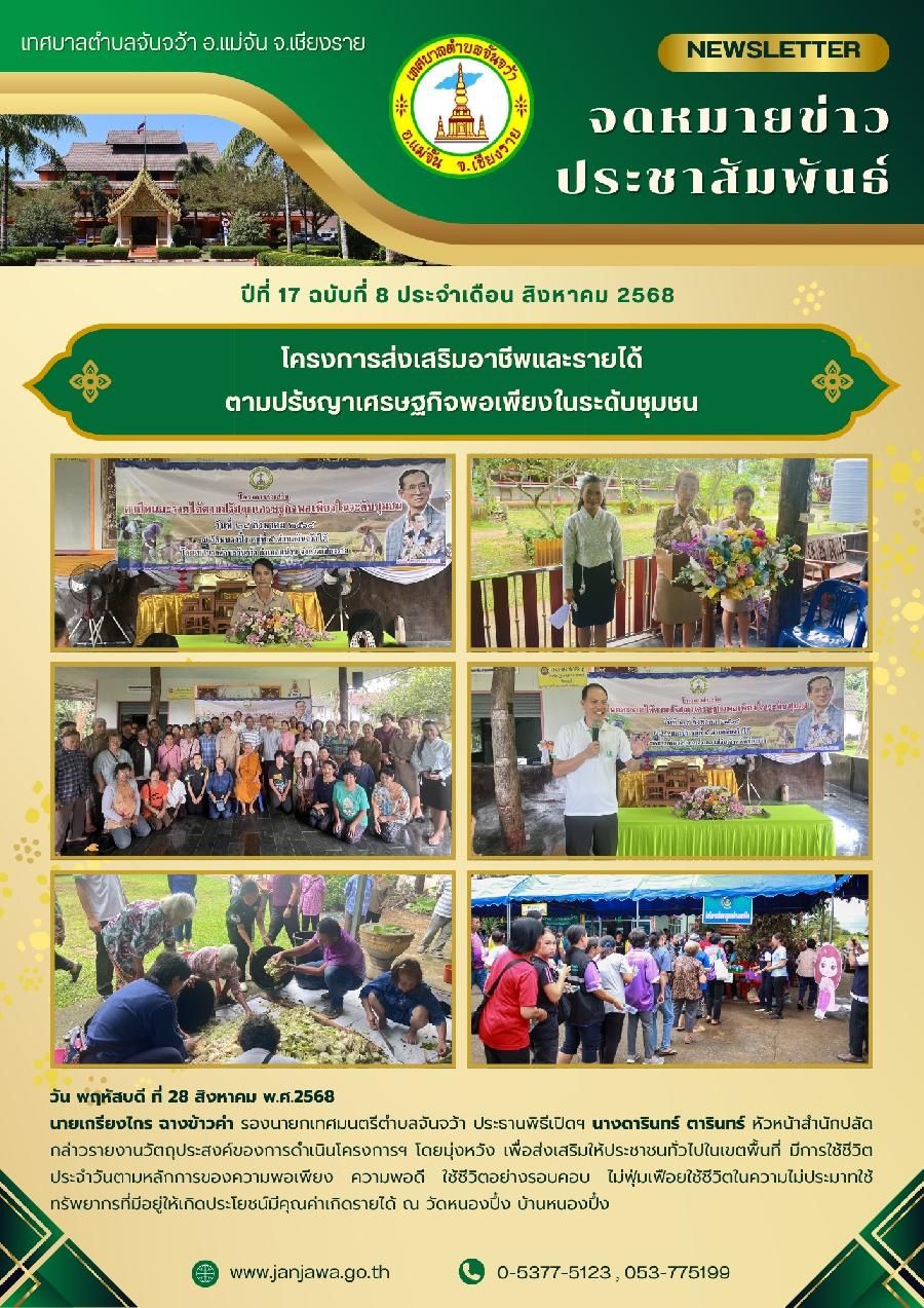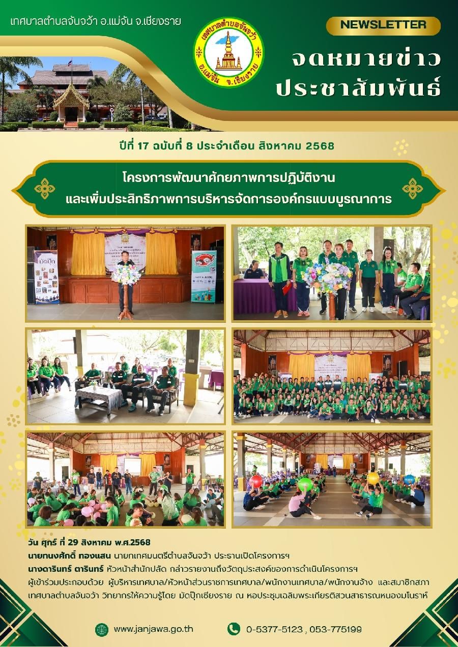จดหมายข่าวเทศบาลตำบลจันจว้า ปีที่ 17 ฉบับที่ 8 ประจำเดือน สิงหาคม 2568 วันที่ 01 กันยายน 2568 [ 15:17 น. ] เข้าชม 12 ครั้ง พิมพ์ วารสารประชาสัมพันธ์ จดหมายข่าวเทศบาลตำบลจันจว้า ปีที่ 17 ฉบับที่ 8 ประจำเดือน สิงหาคม 2568 อัลบั้มภาพ